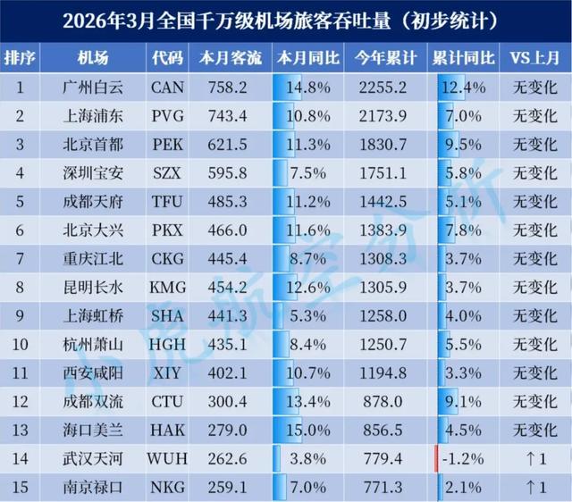 今年一季度,广州白云国际机场旅客吞吐量2255万人次,同比增长12.4%,反超浦东机场的2173万人次,再次登顶。